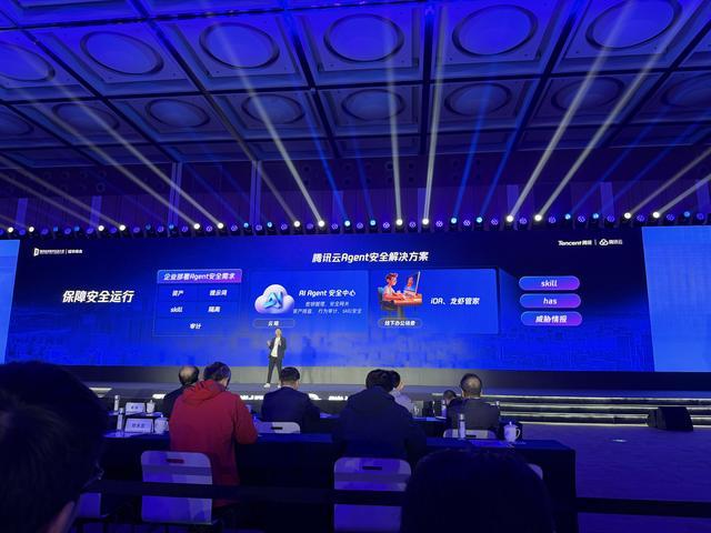 第三是安全,腾讯的AI智能体安全解决方案,帮企业梳理数据资产,提供安全管控能力。对于Skills的安全,其可以屏蔽企业龙虾从外部下载技能,提供安全的检测能力。