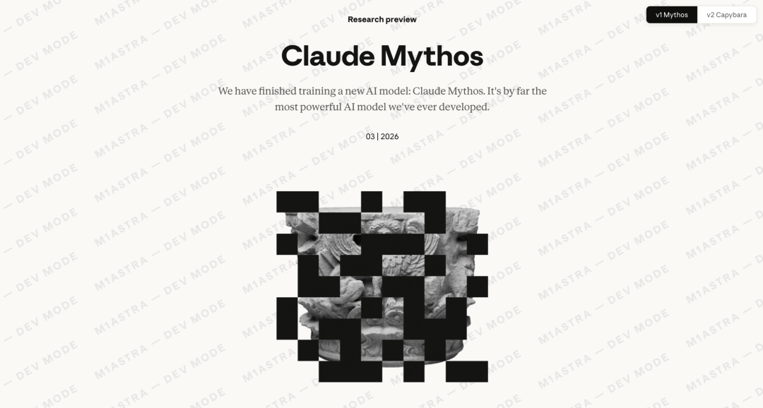 怎么实锤的?泄露的博客有两个版本。V1 通篇用「Mythos」,V2 把每一个「Mythos」都替换成了「Capybara」,连文中每处引用都做了对应修改。说明这个模型在 Anthropic 内部相当长时间里就叫「卡皮巴拉」,「Mythos」是后来包装出来的发布名。