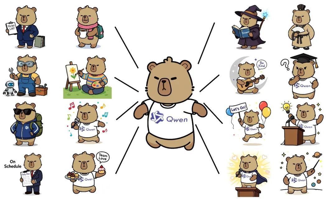 但 AI 圈最知名的卡皮巴拉 IP 早就有主了。阿里通义千问 Qwen 的吉祥物就是卡皮巴拉,社区里到处是卡皮巴拉头像和周边,品牌认知度拉满。