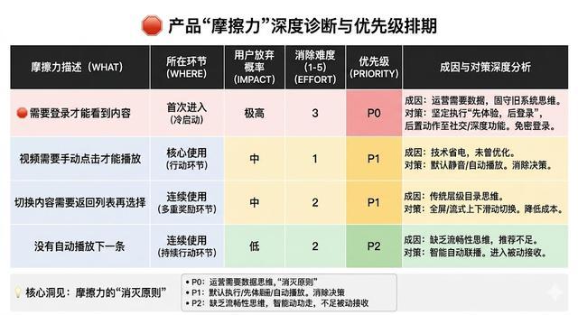 给初级PM的工作洞察:这个设计原则有一个可以直接复用的方法——「摩擦力清单」。把用户从打开产品到完成核心行为的路径,每一个需要用户做决定或者需要等待的节点全部列出来。这张清单上的每一项,都是你下一个版本可以优化的方向。减少摩擦力的效果,通常比新增功能的效果更直接。