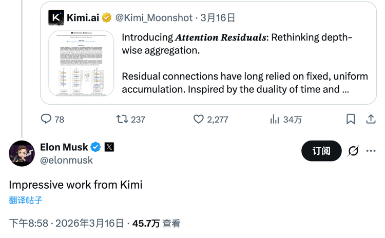 中间层则是以智谱、月之暗面为代表的大模型公司。前者已经上市,股价对比发行价上涨近5倍,市值到了3000亿港元左右。后者同样备受关注。他们的模型被黄仁勋在GTC上多次提及,不久前发布的技术论文,被马斯克评价“Impressive work”。
