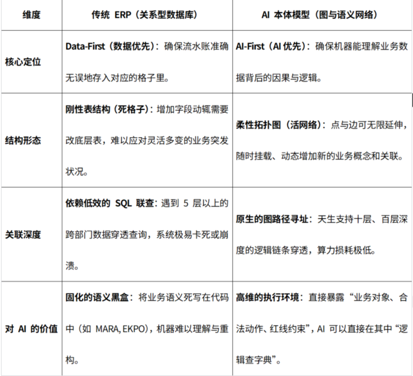 既然传统 ERP(如 SAP、Oracle)也定义了“主数据”和“业务流程”,为什么它们不能直接作为 AI 的大脑?