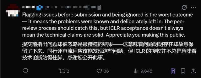 X平台上,有网友评价道,在论文提交前问题就被指出,但却被忽略,这是最糟糕的结果。这意味着TurboQuant团队明明意识到问题存在却故意保留了下来。虽然同行评审流程应该能发现这些问题,但ICLR的接收并不总是意味着技术论断站得住脚。
