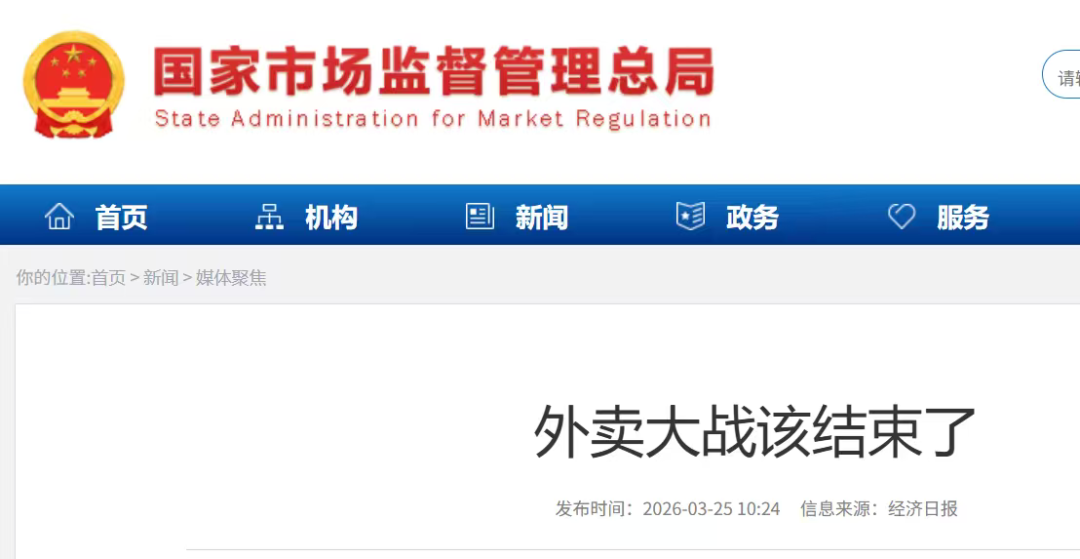 就在财报发布前一天,国家市场监管总局转发《经济日报》文章,明确“外卖大战该结束了”。监管的定调意味着非理性烧钱不可持续,战事或将进入新阶段。