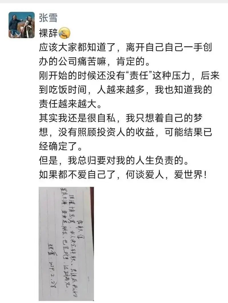 2024 年 3 月 1 日,37 岁的张雪在朋友圈晒出了一封辞职信。