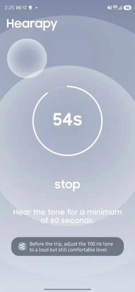 这款应用会播放精准的 100 赫兹音频,用户只需在出行前聆听约一分钟即可。三星表示,这短短一分钟的聆听,最多能在两小时内缓解晕动症的各类不适症状。其主打便捷高效,只需在出发前简单使用,无需在旅途全程持续操作。