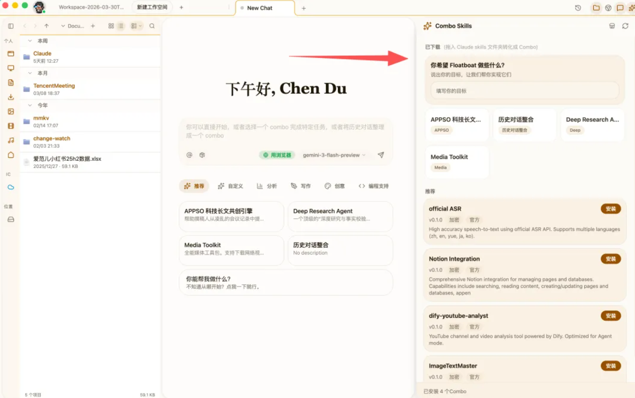 当下次遇到类似任务的时候,Floatboat 会自动把这个 Combo 推荐给你,一键启动。