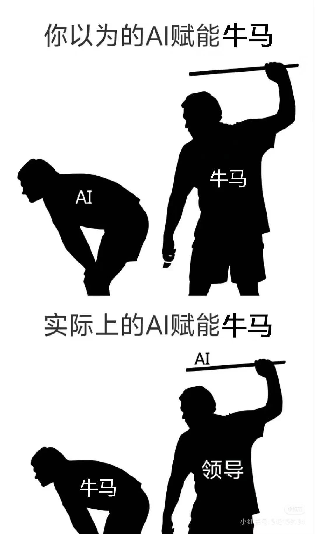 领导们觉得 AI 在帮你减负,于是理所当然地给你加派任务;而你却像个被抽得越来越快的陀螺,忙得脚不沾地,连喘息的时间都没有。