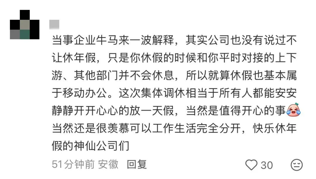 甚至有网友直言,“用年假那是强制放假”。