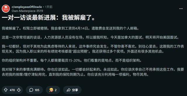 Reddit上甲骨文员工爆料被裁员(中文转译版)