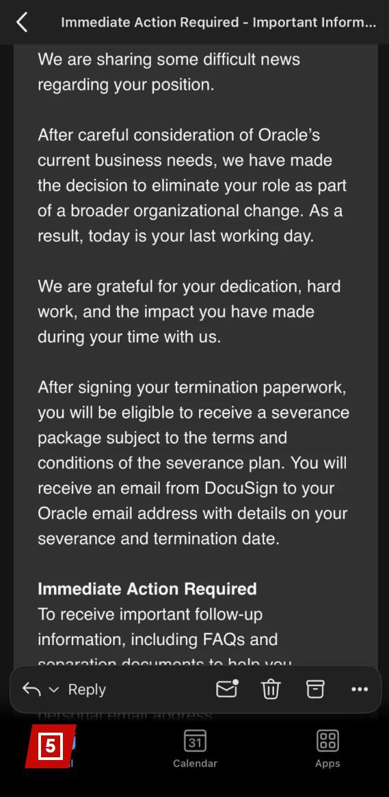 据《纽约邮报》报道,3月31日,美国、印度、加拿大、墨西哥及乌拉圭等多国甲骨文员工的收件箱里出现了一封署名“Oracle Leadership”的邮件。邮件措辞直白: