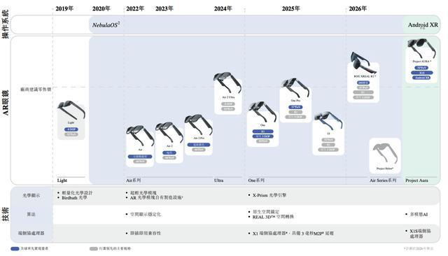 XREAL的AR眼镜产品线包括Air系列、One系列和Light-Ultra-Aura产品线三个系列。