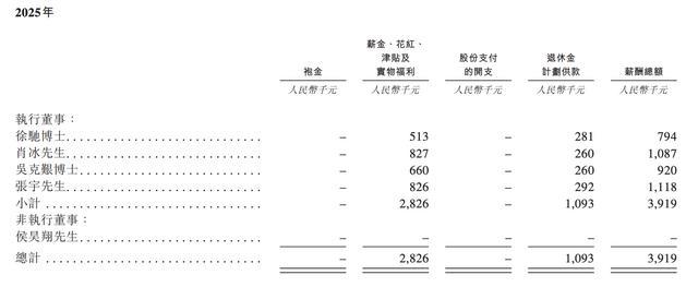 2025年该公司董事薪酬如下: