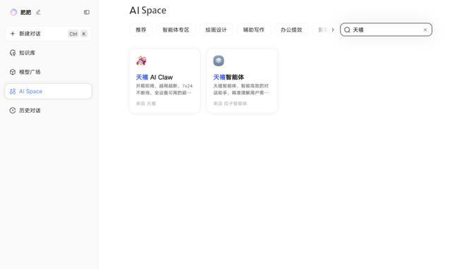 第二步:在天禧的AI Space里面搜索天禧,找到天禧AI Claw