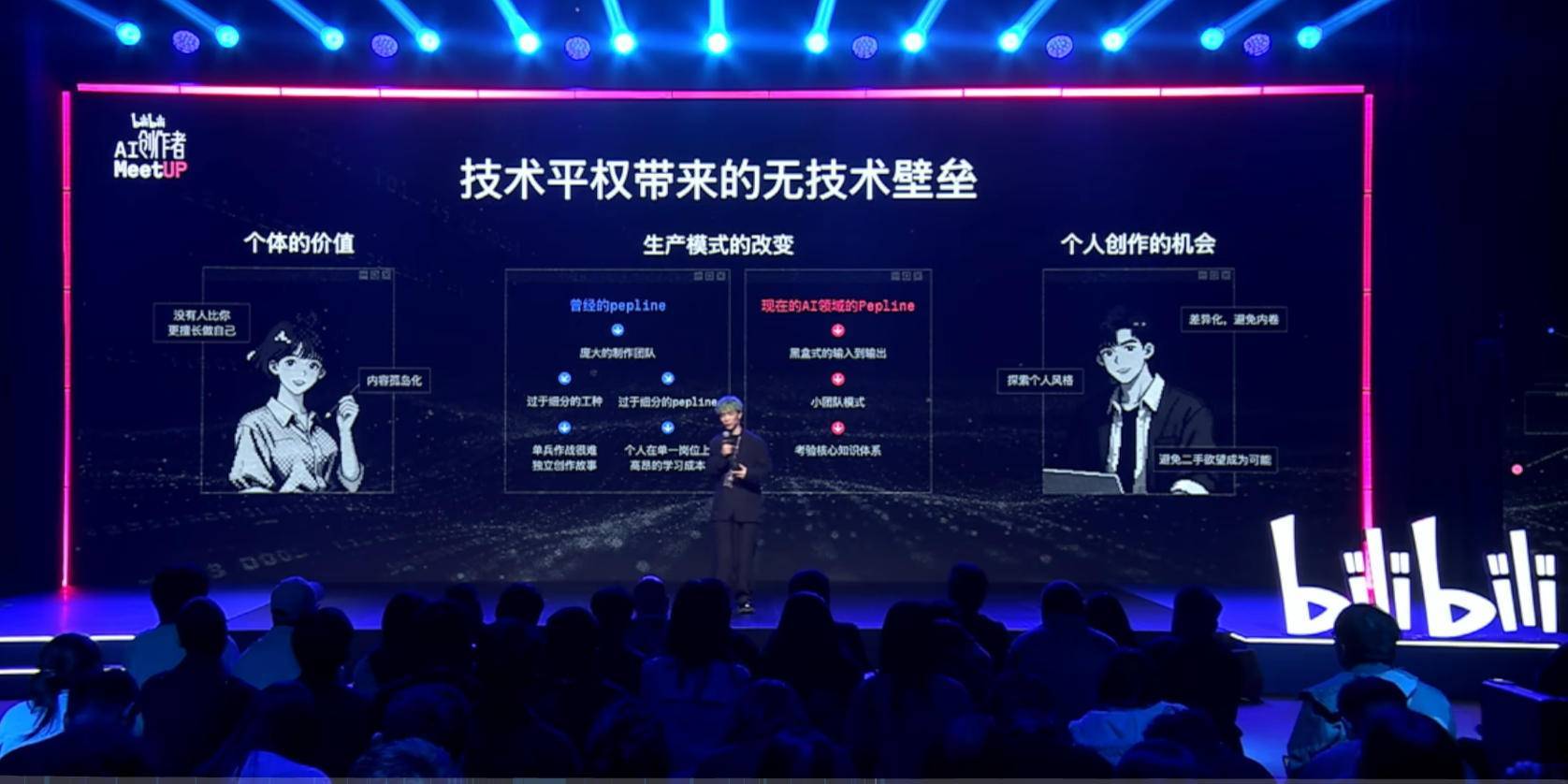 关于 AI 赛道,赛道其实变多了,由于前端和后端的成本降低,观众的压力很小,制作者的压力也很少,必然带来一个结果就是包容增加,这样一个时代会承载更多有趣的灵魂。