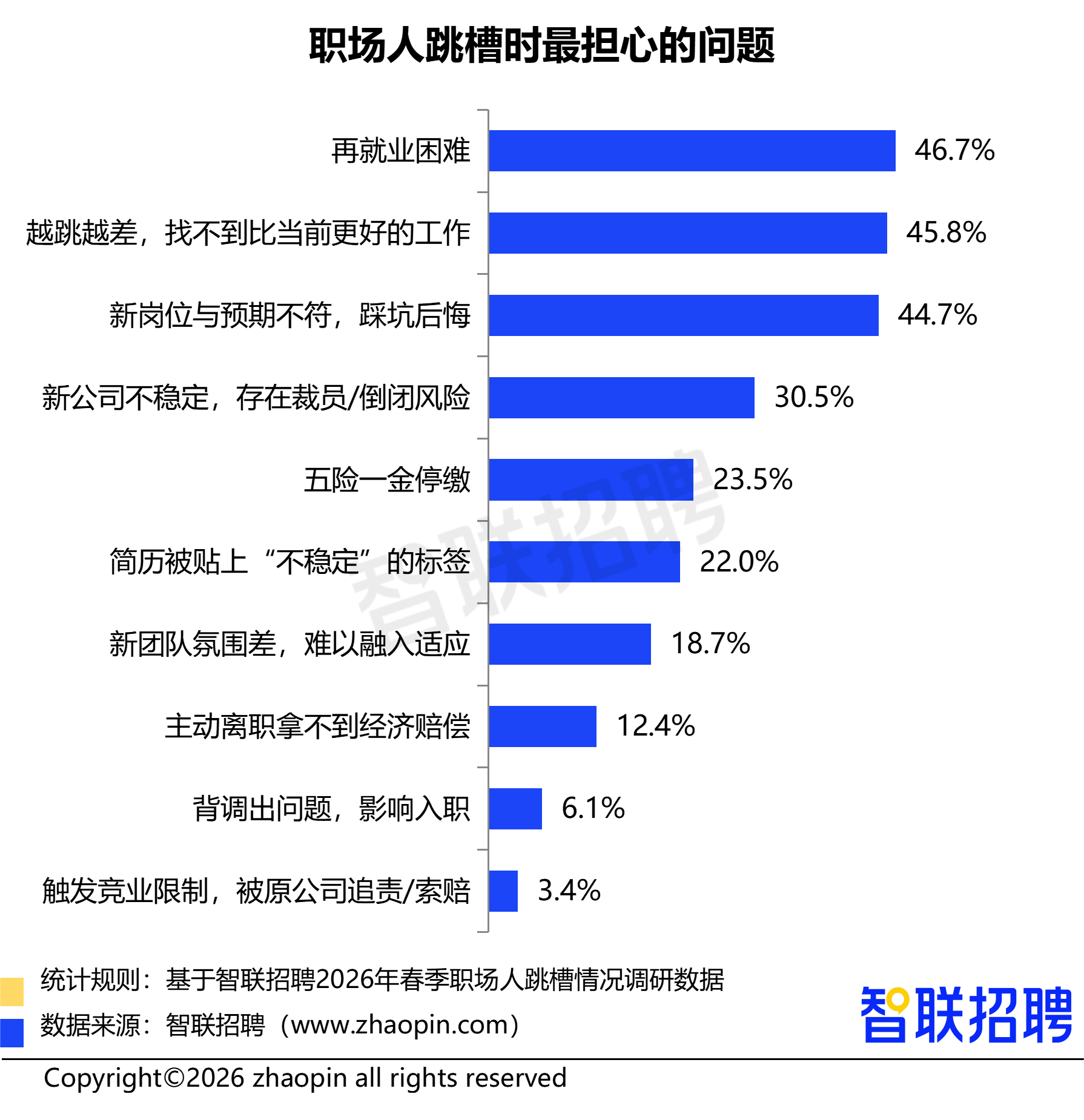 近半数职场人担忧跳槽风险,46.7%担心“再就业困难”,45.8%担心“越跳越差”。31.6%的职场人明确想转行,客服、销售、设计岗位转型意愿最强。超七成求职者难以接受企业谈薪不透明。不跳槽的职场人中,44.4%因“大环境不确定”选择观望,但46.7%在现有岗位上通过竞争新项目、调整工作内容等方式进行“职业重塑”。