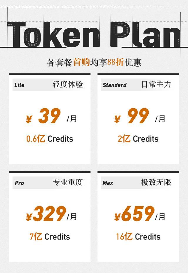 Lite(¥39 / 月)—— 0.6 亿(60M)Credits,可执行约120 个中等 ~ 复杂任务。适合刚接触 AI 开发的探索者。