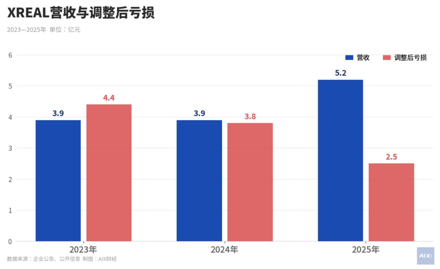 但与此同时,XREAL在持续亏损:2023年至2025年,其经调整净亏损分别为4.4亿元、3.8亿元和2.5亿元,三年累计亏损约10.6亿元;截至2025年末,公司现金及现金等价物仅为6363.4万元,经营活动现金流仍为净流出。