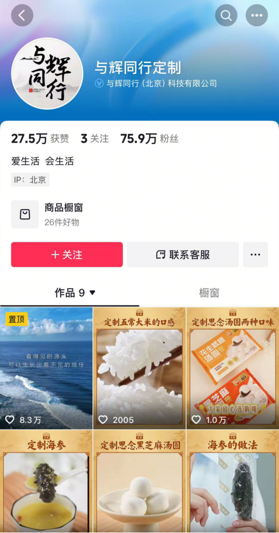 今年,董宇辉又更进一步,将定制品做成独立频道,开设了新账号“与辉同行定制”。针对部分定制产品,从原材料到生产过程进行全流程公开。目前,该账号橱窗中已经出现不少“与辉定制”产品,都是与品牌方联合开发的定制款。