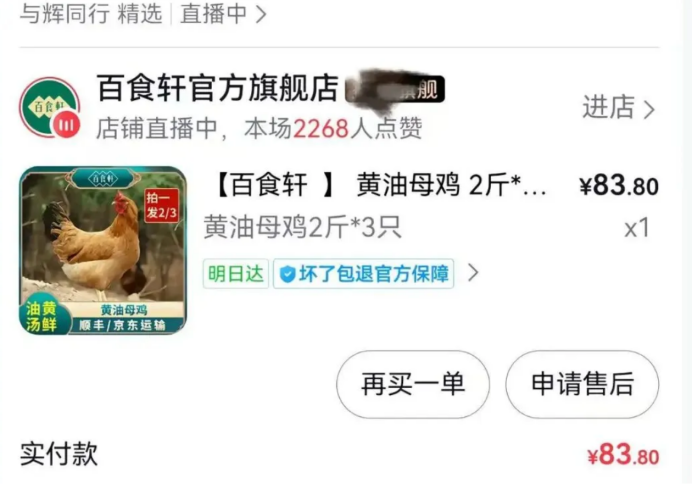 上一次是今年1月份,董宇辉在直播间售卖的一款“大别山黄油母鸡”,遭当地麻黄鸡协会“打假”,后者对该商品的货源、养殖成本、出货数量提出质疑。当时,与辉同行客服称产品已下架,但并未对此有更多回应。