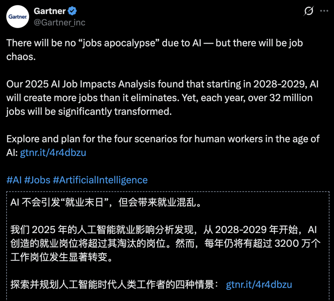 Gartner重磅预判:AI就业无末日!每年3200万人饭碗或“砸碎重铸”