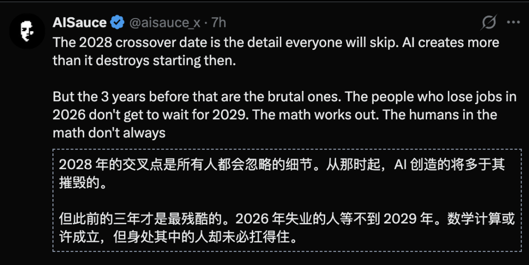 真正残酷的是2028年拐点之前,今年失业的人等不了3年——数学上或许说得通,但身处风暴之中的人未必扛得住。