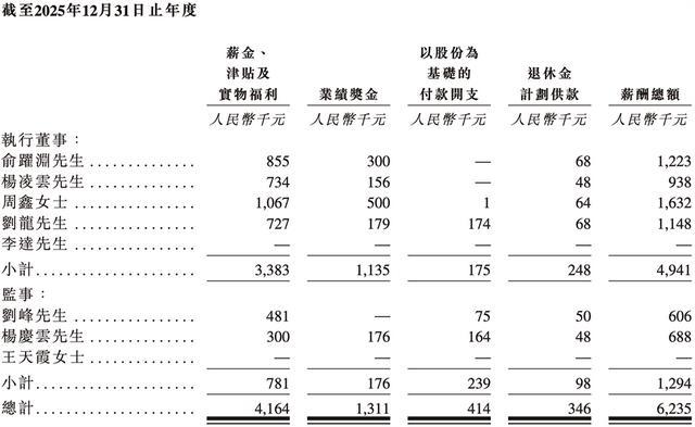2025年,安擎执行董事及监事薪酬如下: