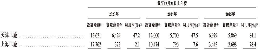 安擎生产设施的设计产能及利用率详情如下: