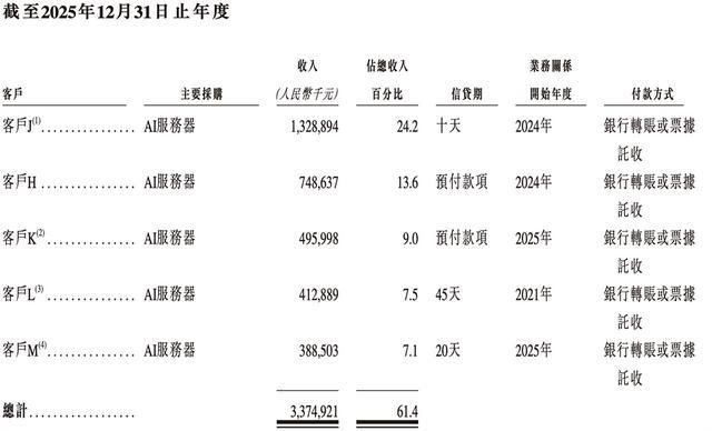 2023年、2024年、2025年,来自五大客户的收入分别占其总收入的47.2%、49.5%、61.4%。