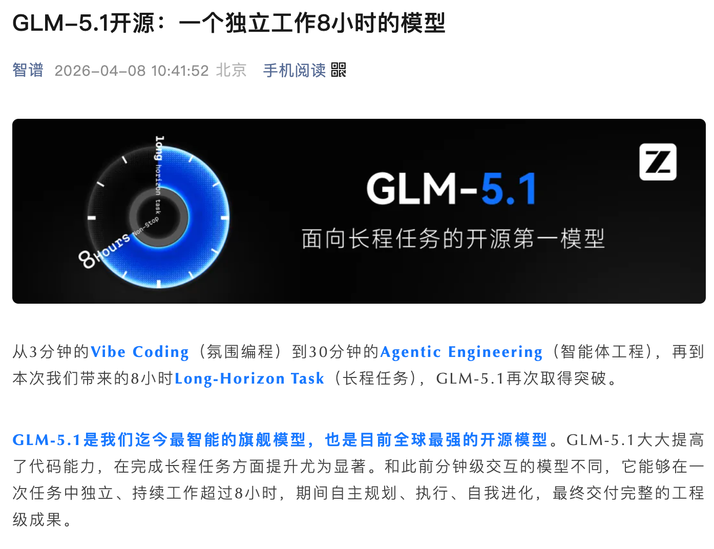 GLM-5.1 最让人没想到的,不是跑分,是它能工作多久。