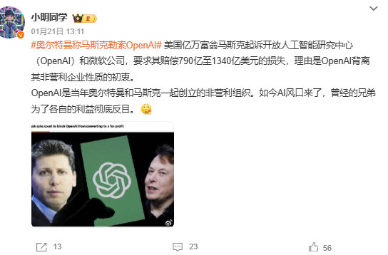 这次不是因为特斯拉的股价波动,也不是因为SpaceX的火箭发射,而是来自他曾经一手参与创立的OpenAI。