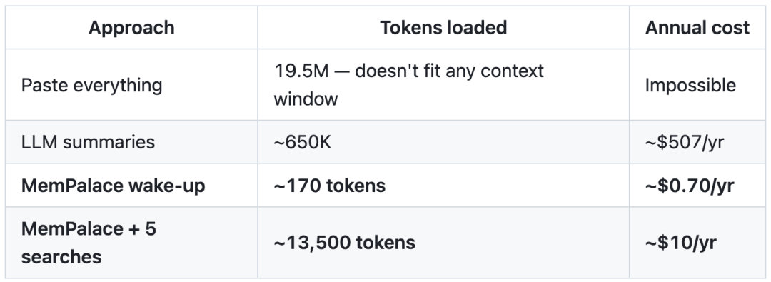 若要用MemPalace,每次AI启动只加载170个token的关键事实——你的团队、项目、偏好….只在需要的时候才检索。