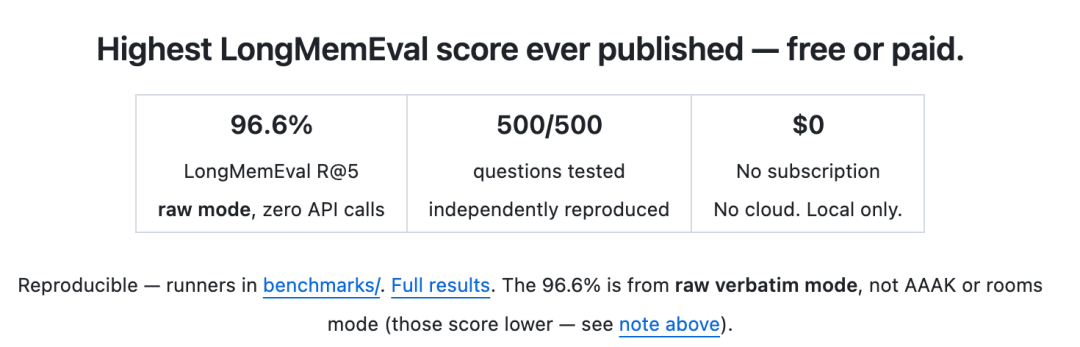 开源社区的反应也很有意思。骂完之后,反而有更多人开始认真审视这个项目——96.6%的raw模式成绩是实打实的,本地免费也是实打实的。