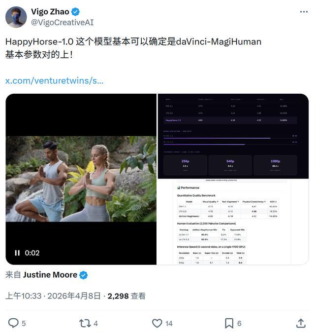 另外还有网友说,该模型可能是Sand.ai的daVinci-MagiHuman,参数都对的上。
