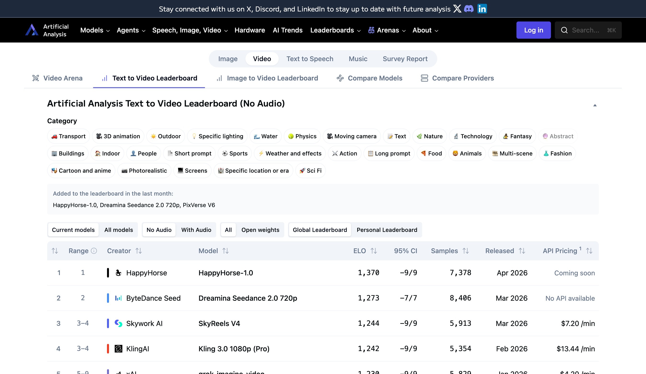 匿名模型「快乐马」HappyHorse-1.0 屠榜 AI 视频榜单