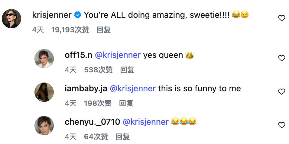 因为她的女儿们,就是那一位位顶着卡戴珊或詹纳这两个姓氏,把美利坚文娱圈搅得天翻地覆的豪杰: