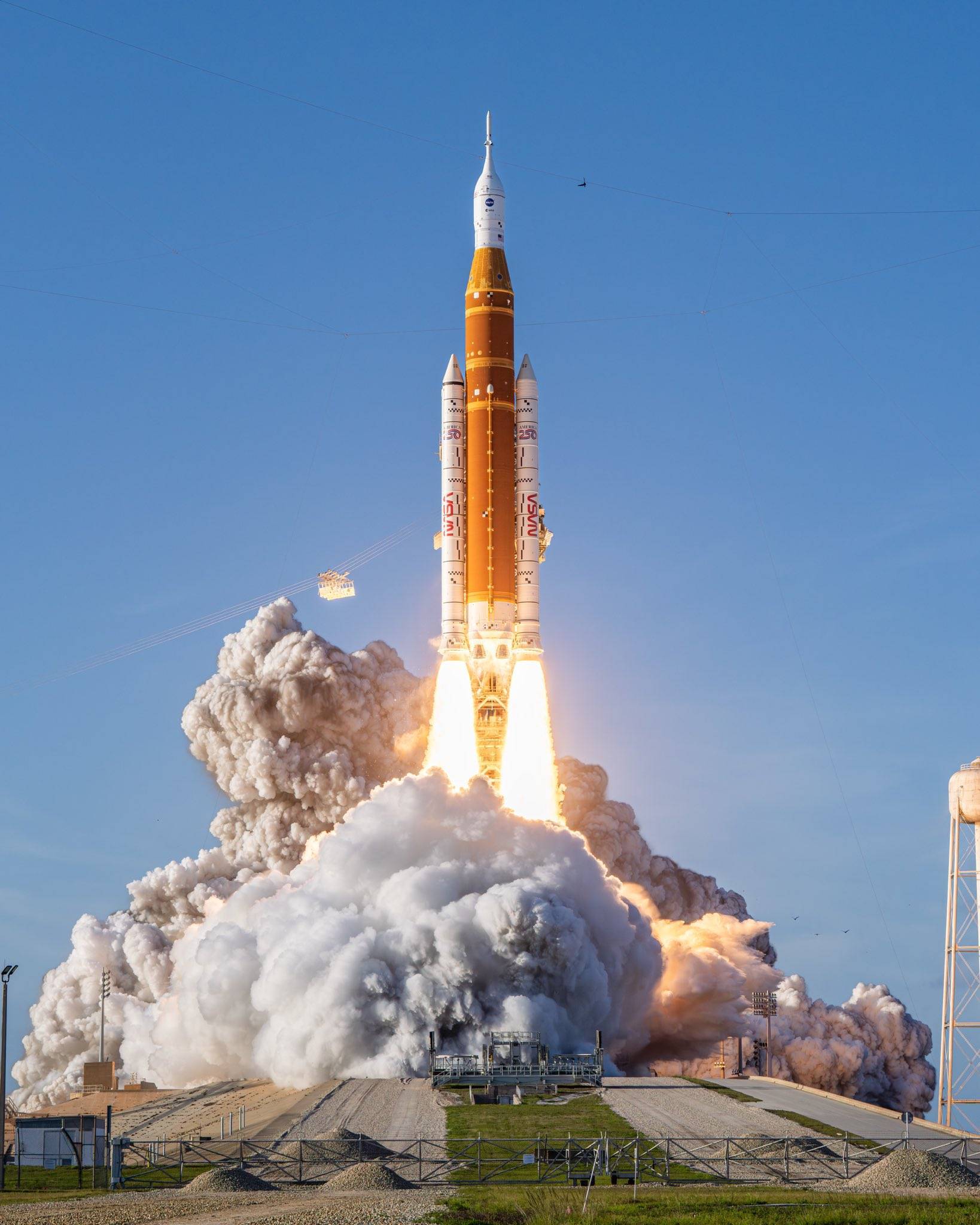 尽管目前的 SLS Block 1 还不是最终登月的完全体,但它仍然超越了当年载阿波罗 11 号上天的土星 5 号(Saturn V)重型运载火箭,起飞推力达到了约 880 万磅(约 39.5 兆牛):