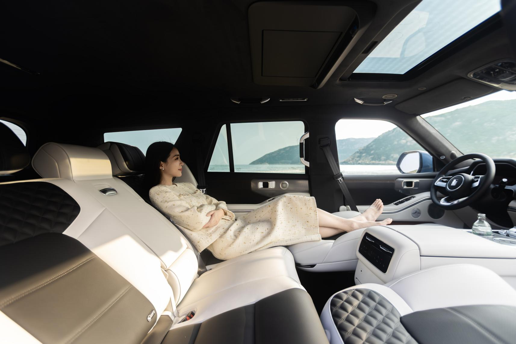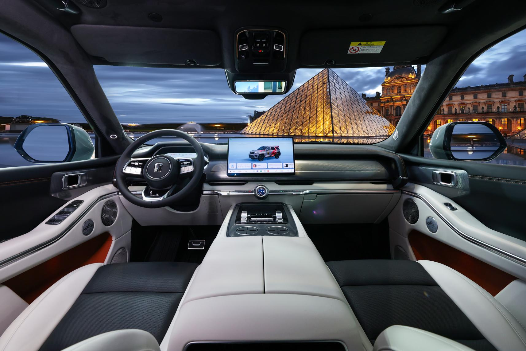 专属配色“敦煌青”源自敦煌莫高窟壁画青金石原色,采用10纳米级超微色浆、四重阶梯式高温烘烤工艺及纳米陶瓷自修复清漆,实现漆面十年鲜亮。内饰秉持“天地有序”东方理念,以“麒麟之脊”为中轴线打造对称式座舱,全车腰线以上采用高克重麂皮绒包覆。