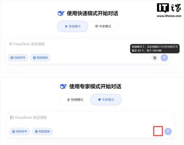 IT之家 4 月 9 日消息,据IT之家小伙伴反馈,DeepSeek 日前推出的“专家模式”又进行了更新,支持上传文件。