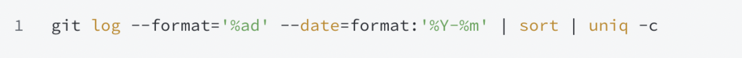 这一命令可以查看整个仓库历史中,每个月的提交数量。如果节奏稳定,则说明项目是健康的;如果某个月提交量突然减半,通常意味着有人离开了;如果 6 到 12 个月呈下降趋势,说明团队正在失去动能;如果是周期性高峰 + 低谷,说明团队是「集中发版」,而不是持续交付。