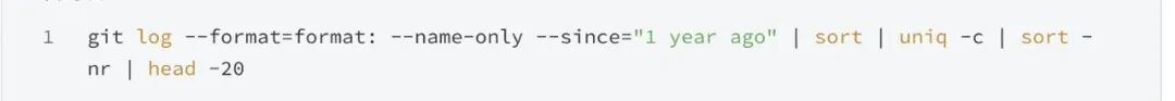 通过这一 Git 命令,可以查看过去一年中改动最多的 20 个文件,排在最前面的那个文件,几乎总是别人会提前提醒那一个:「哦对,就是那个文件,没人敢动它。」
