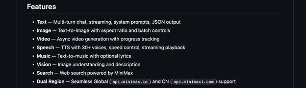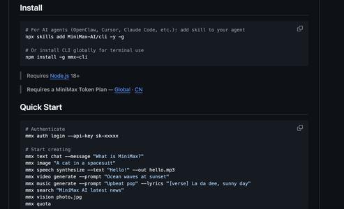 MiniMax官方提供了完整文档和源码,开发者和企业可在GitHub获取。