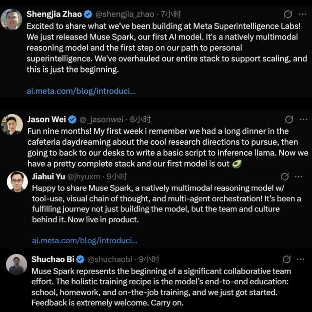 加入Meta的不少华人AI大牛纷纷转发了这一成果,包括赵晟佳、毕树超、余家辉、Jason Wei等等。值得一提的是,MSL团队的华人浓度很高,在转发新模型的Meta研究员中,从领导到基层员工,许多都是华人。