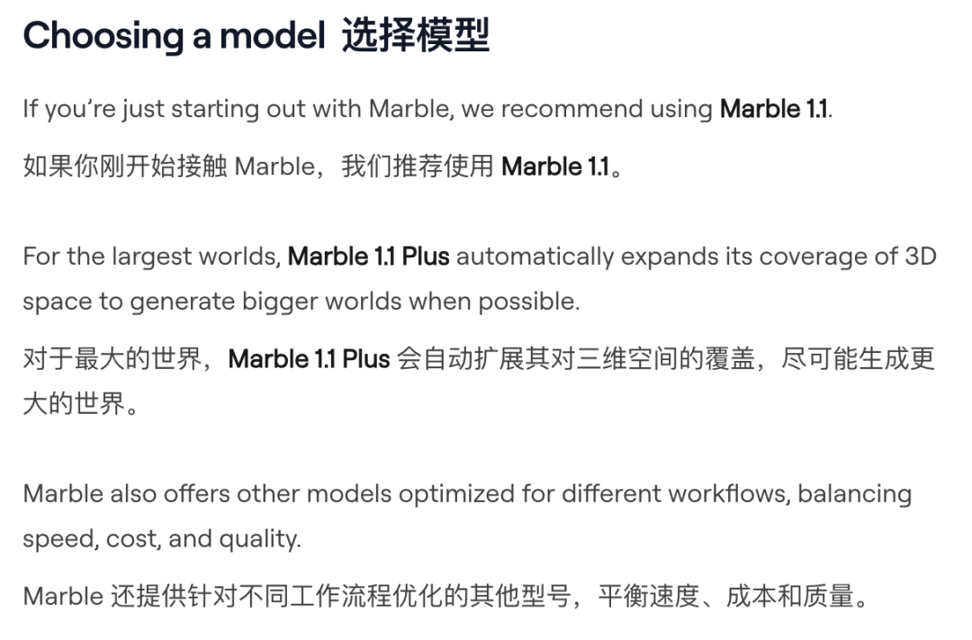 API方面呢,目前默认调用的仍是上一代Marble 1.0,但官方表示后续会将默认模型切换为Marble 1.1,大家可以蹲蹲。