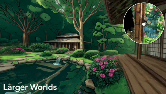 大家也发现了,那就是现阶段的世界模型,似乎还很难完美兼顾 「大空间」与「高画质」……