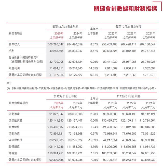 营业收入 3082 亿元,同比增长 8.4%,首次突破 3000 亿元大关;