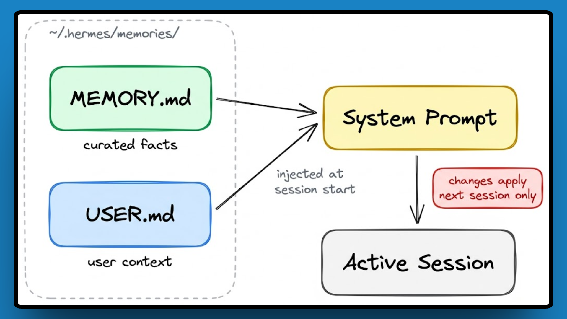 Hermes 的记忆系统也经过专门设计,一共分四层,每层负责不同的事,在不同的时机被调取。