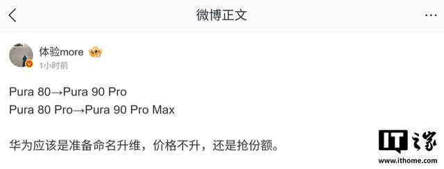 IT之家 4 月 11 日消息,博主 @体验 more 今天在微博透露,华为应该是准备命名升维,价格不升、还是抢份额。