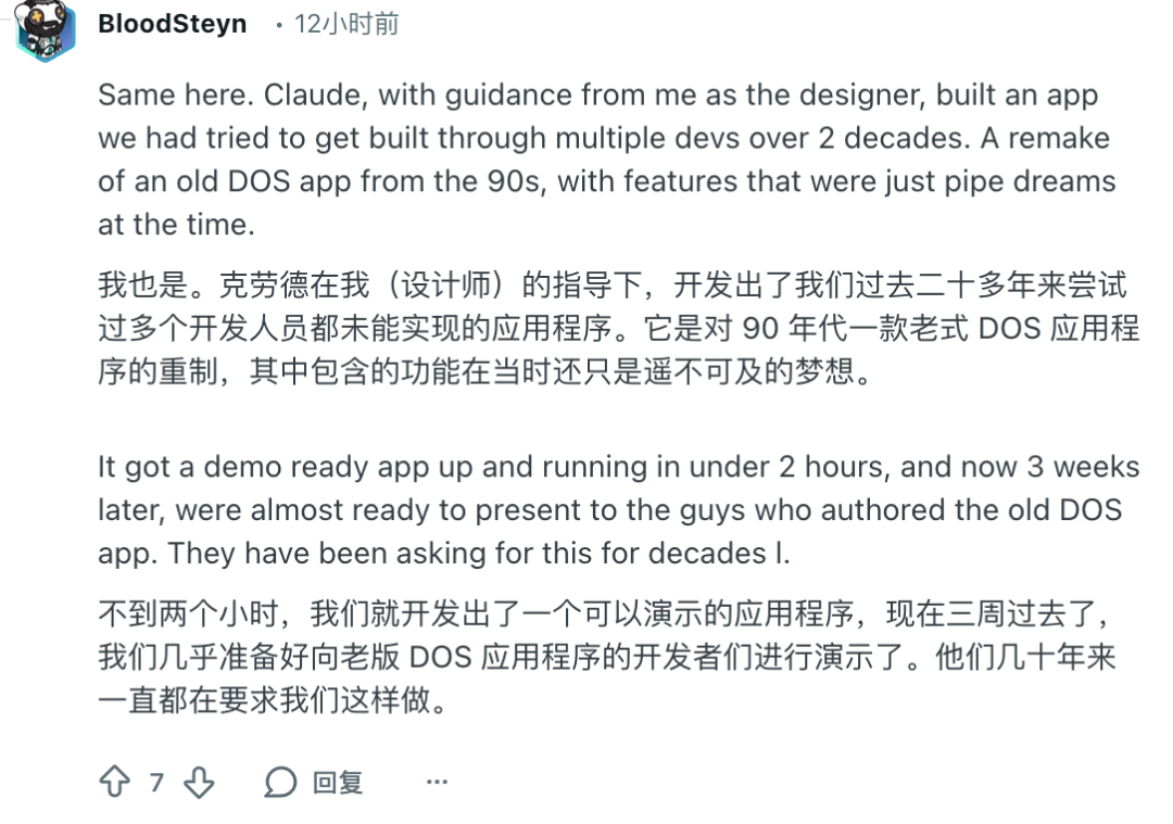 原本团队用了二十年都没能实现的需求,现在用Claude两小时就能出演示版本。