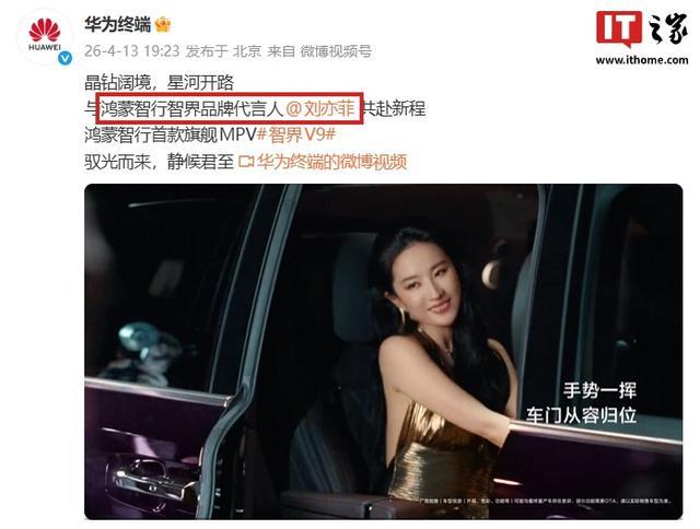 IT之家 4 月 13 日消息,华为终端今晚发布视频,正式宣布刘亦菲将担任鸿蒙智行智界品牌代言人。